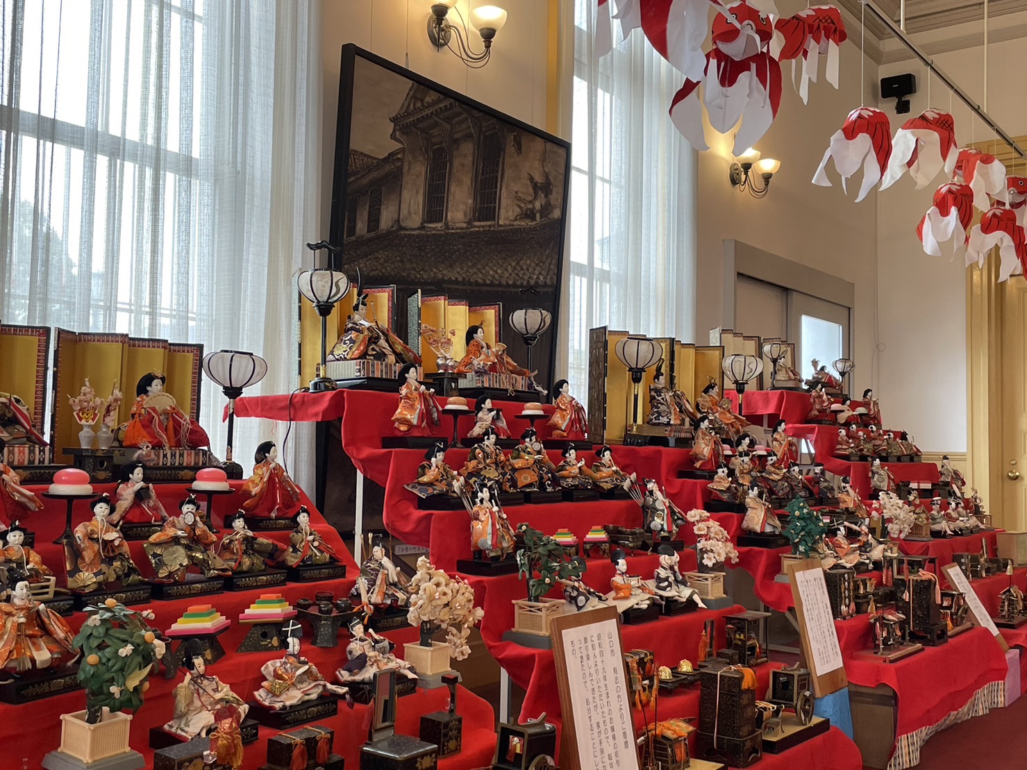 古くは明治時代のものから、手作りの物まで様々な可愛らしいおひな様を見ることができます。